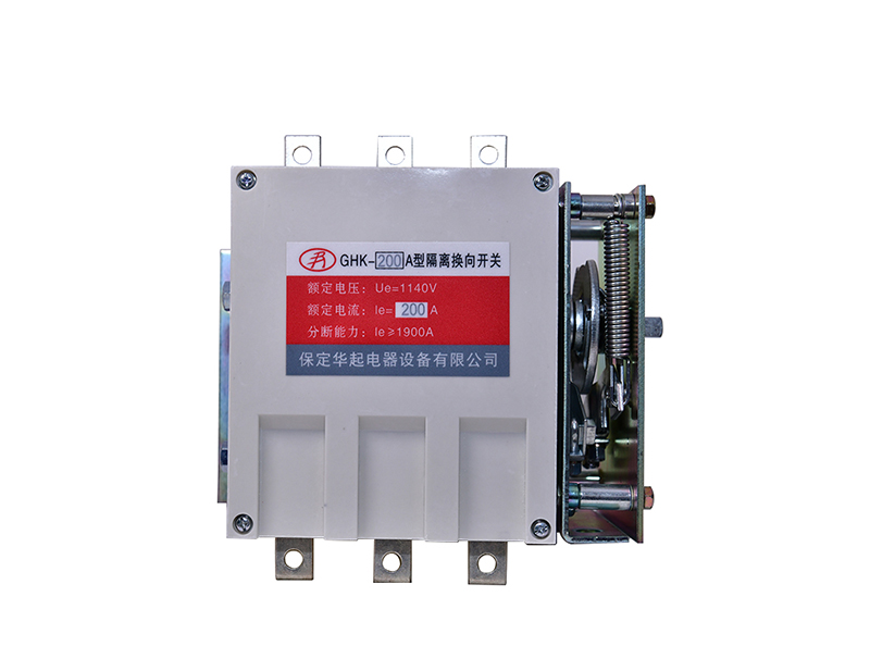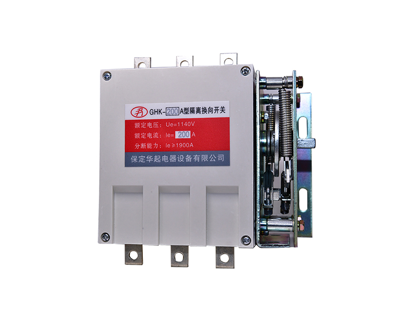 BRGHK系列隔離換相開關(guān)(以下簡稱隔離器)。適用于煤礦井下交流50Hz,額定工作電壓至1140V以下, 電流200~500A的礦用千伏級(jí)大容量。隔爆型電磁啟動(dòng)器中,用作于主電路的隔離和在無負(fù)載情況下改變電 源的相序。隔離器上裝有可靠的超前動(dòng)作的輔助觸頭,在一般情況下保證隔離器在無負(fù)載情況下進(jìn)行操作 接通、分?jǐn)喔綦x電源和換相,在特殊情況下(如接觸器觸頭熔焊故障等),隔離器具有一定的分?jǐn)嗄芰Α?